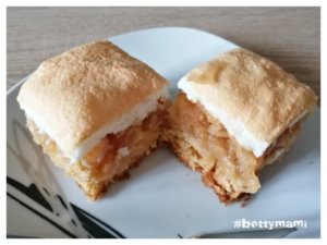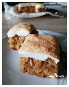 ~ Az almás sütit 30 perc után kivesszük a sütőből és a tojáshabot lazán szétkenjük a tetején és további kb. 10-15 perc alatt készre sütjük.![]()