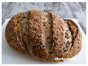 Tetszés szerint bevágjuk a tetejét, lespricceljük hideg vízzel, ízlés szerint megszórhatjuk magokkal is és 250 fokra előmelegített sütőben sütjük kb. 20 percet, majd 200 fokra visszakapcsolva további kb. 20 perc alatt készre sütjük.