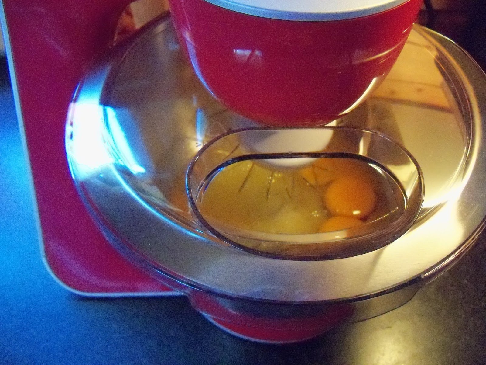 A tojást és a cukrot a tálba raktam és 1-es fokozaton elindítottam…