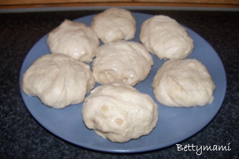 Ezután ízlés szerinti méretű darabokat tépkedünk le a tésztából(nekem 8 db lett), amiket egy olajozott tányérra/tálcára helyezünk és újra 5-10perig állni hagyjuk.