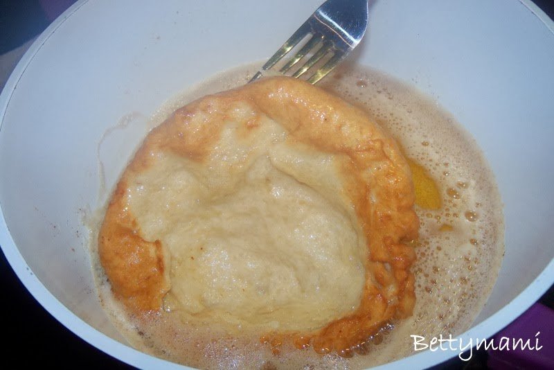 A gombócokat olajos kézzel kihúzkodjuk, lehetőleg kör alakúra, úgy hogy ne szakadjon el és a forró olajban mindkét oldalát 1-2 perc alatt szép aranybarnára sütjük.