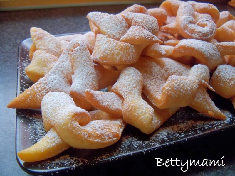 Vékonyan belisztezett deszkán kb. 2-3 mm vékonyra kinyújtjuk a tésztát, derelyevágóval 4-5 cm széles csíkokra vágjuk, majd ferdén kockákat vágunk rajta, úgy hogy rombusz forma legyen belőlük. A rombuszok közepét is bevágjuk kb. 1-2 cm hosszan. Ezen a metszésen áthúzzuk az egyik csúcsot (tetszés szerint lehet akár mind a kettőt is…).