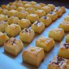 Vékonyan belisztezett deszkán kb. 2-3 mm vékonyra kinyújtjuk a tésztát, derelyevágóval 4-5 cm széles csíkokra vágjuk, majd ferdén kockákat vágunk rajta, úgy hogy rombusz forma legyen belőlük. A rombuszok közepét is bevágjuk kb. 1-2 cm hosszan. Ezen a metszésen áthúzzuk az egyik csúcsot (tetszés szerint lehet akár mind a kettőt is…).