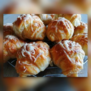 Majd lekenjük egy kissé felvert tojással és tetszés szerint megszórjuk a tetejüket szezámmaggal és/vagy reszelt sajttal.