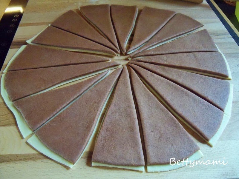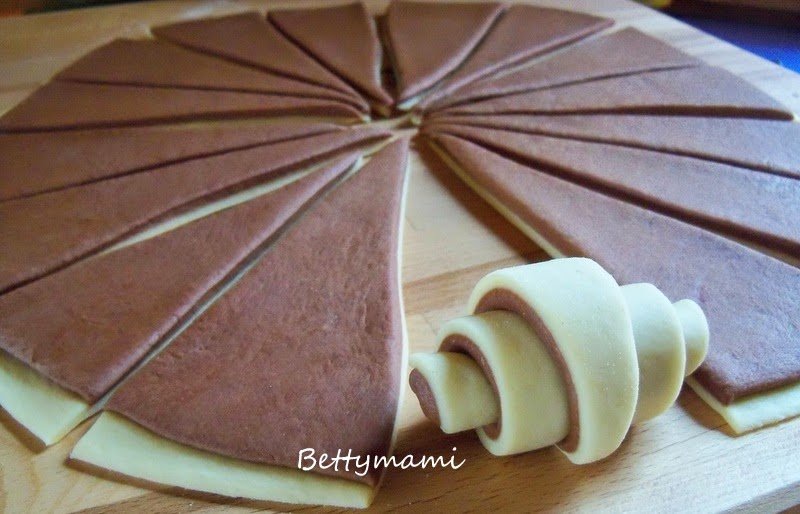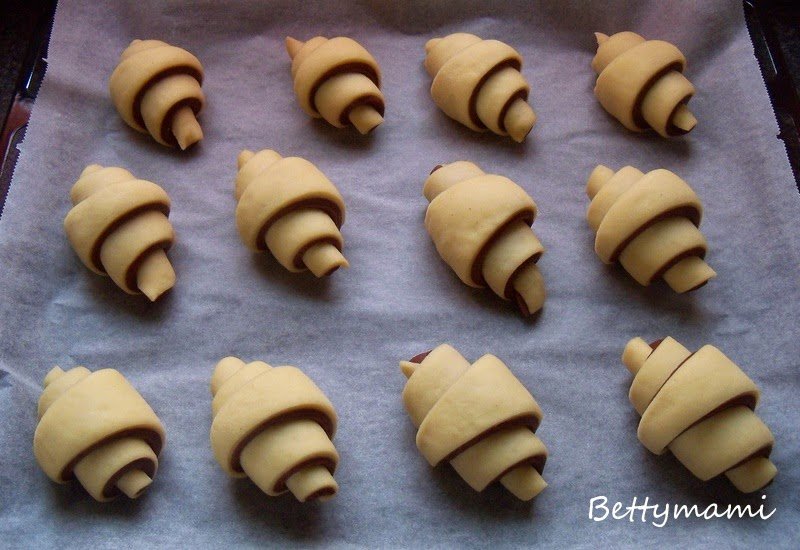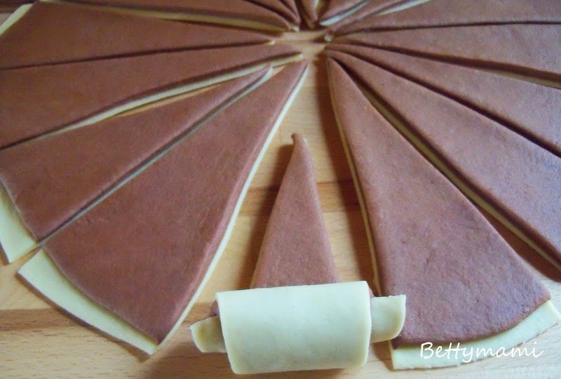 A cikkeket kintről befelé feltekerjük, így kis duci kifliket kapunk.