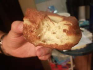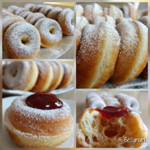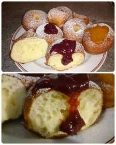 Óvatosan megfogva a fánkokat egyik oldalukba középen kis mélyedést nyomunk, és ezzel a mélyedéssel lefelé(!) rakjuk a bő és meleg(de nem forró) olajba, és lefedve sütjük amíg aranybarna lesz, majd megfordítjuk és fedő nélkül sütjük készre a másik oldalát is.