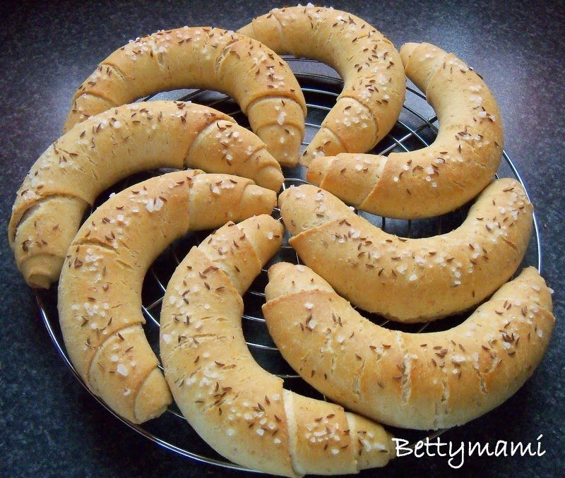 A kifliket lespricceljük hideg vízzel és tetszés szerint megszórhatjuk durva sóval, köménymaggal vagy akár más magokkal is. De simán is hagyhatjuk, ha úgy tetszik…:)