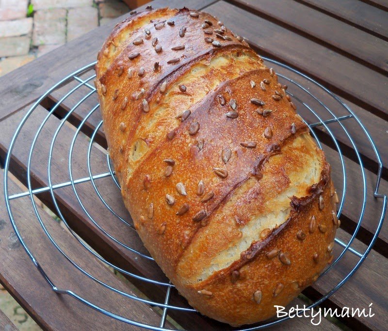 Bekapcsoljuk a sütőt 220 fokra, a kenyeret tetszés szerint bevágjuk, alaposan lespricceljük hideg vízzel, tetejét megszórjuk egy kevés napraforgómaggal, a jénai tetejét is alaposan bespricceljük a hideg vízzel, majd betoljuk a forró sütőbe és kb. 50-55 perc alatt megsütjük.
