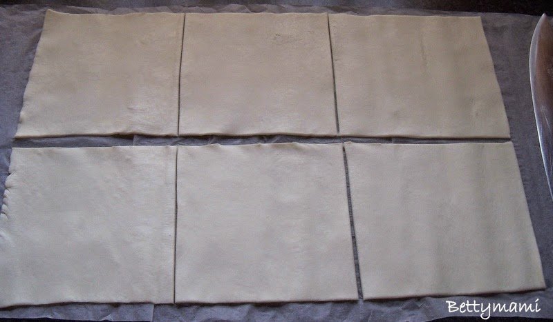 A leveles tésztát kiterítjük, 6 egyforma részre vágjuk.