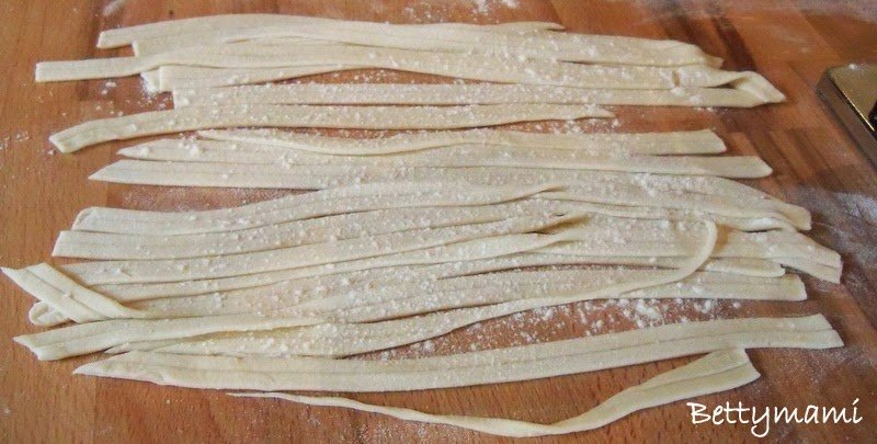 Lisztezett munkalapon kinyújtjuk, tetszés szerinti formára vágjuk.
