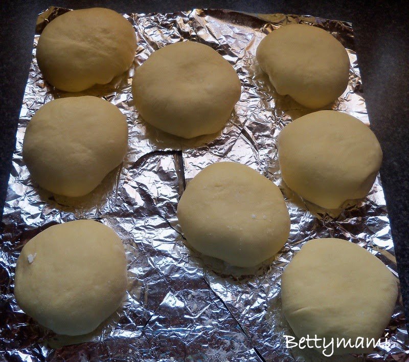 A tésztát a hűtőből kivéve 8 egyforma nagyságú darabba vágjuk, majd ezeket gömbölyű kis cipókra formázzuk és kb. 30-60 percet pihentetjük.