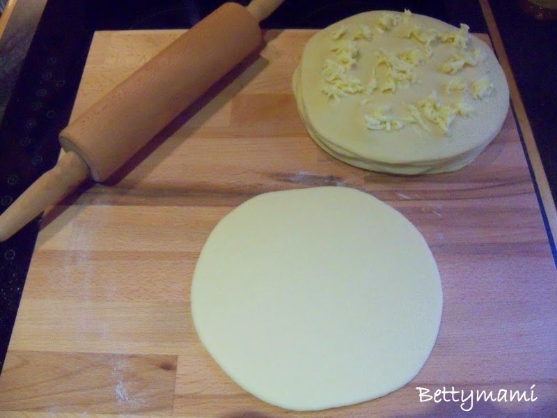 Ezután minden kis cipót kb. egyforma nagyságú vékony kör alakúra kinyújtjuk.