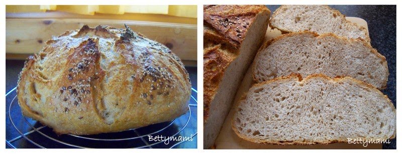 Ismét hagyjuk letakarva kb. 30 percet pihenni, majd megformázzuk és kelesztőtálba vagy sütőpapírral bélelt sütőedénybe tesszük. Letakarva újra pihentetjük, majd tetszés szerint bevágjuk, alaposan lespricceljük hideg vízzel, tetejét megszórhatjuk ízlés szerint magokkal. A sütőedény tetejét is alaposan bespricceljük a vízzel, majd betoljuk a kenyeret 220 fokra előmelegített sütőbe és 55-60 perc alatt készre sütjük.