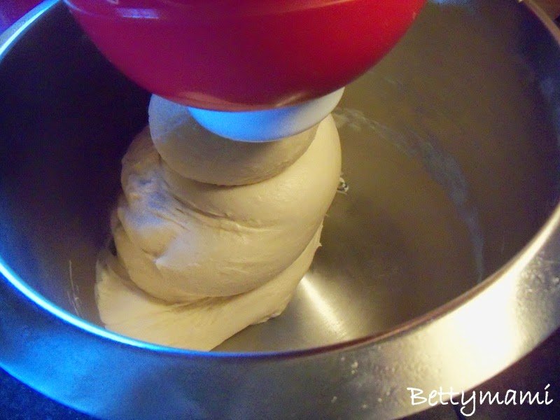 Hozzáadva a sót összedagasztjuk a tésztát.