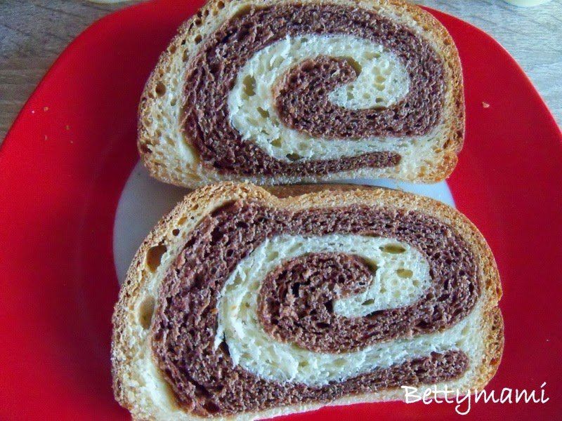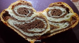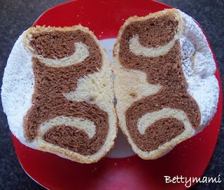 Akkor mindkettőt kb. egyforma nagyságú téglalap formára kinyújtjuk, és egymásra rakva a két tésztát föltekerjük a szélesebb oldalánál.