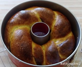 A meglangyosított tejben simára elkeverjük a kovászt, hozzákeverjük az öregtésztát, majd a tojássárgát, és a cukrokat. Aztán hozzáadjuk a lisztet és a sót, és elkezdjük dagasztani. Amikor már szépen összeállt a tészta, akkor csurgatjuk csak hozzá lassanként az olvasztott vajat és szép sima, rugalmas tésztát dagasztunk belőle.