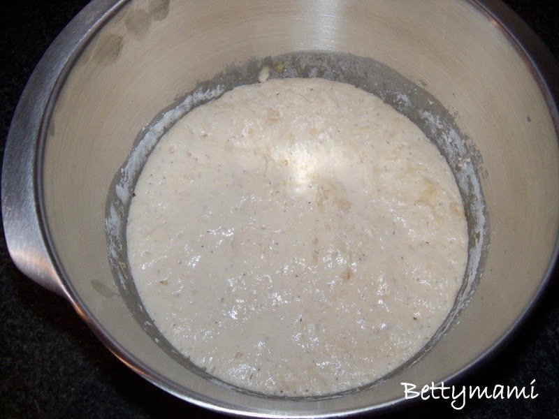 A hűtőben pihenő kovászból kimérünk 100g-ot, kikeverjük 2dl langyos tejjel, majd a 200g lisztet is belekeverjük. Folpackkal letakarva konyhapulton hagyjuk 10-12 órát.