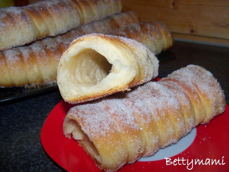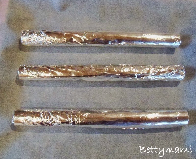 Formának használhatunk különböző megoldásokat, ha nincs speciális kürtös kalács formánk, pl. papírtörlö gurigát, wc papír gurigát, sörös dobozt is…. stb. Én most alufólia-gurigákat használtam.