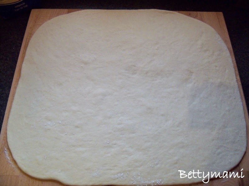 Enyhén lisztezett felületen kb. fél cm vékonyra kinyújtjuk a tésztát.