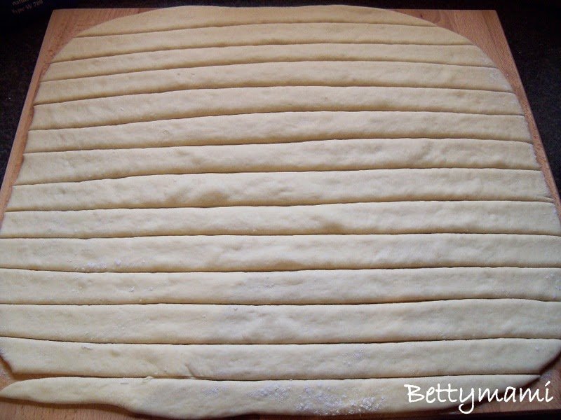 Majd kb. 2cm széles csíkokra felvágjuk.