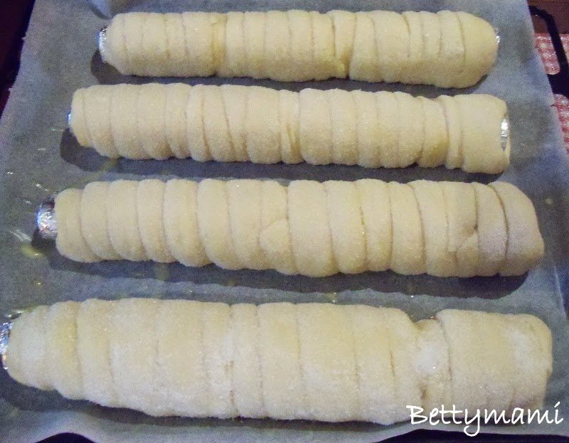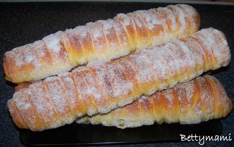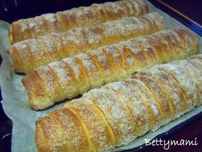 A megsült kalácsot rögtön még forrón ízlés szerinti cukorkeverékekbe forgatjuk mint pl. fahéjas-, kakaós-, kókuszos-, vaníliás cukor…stb.