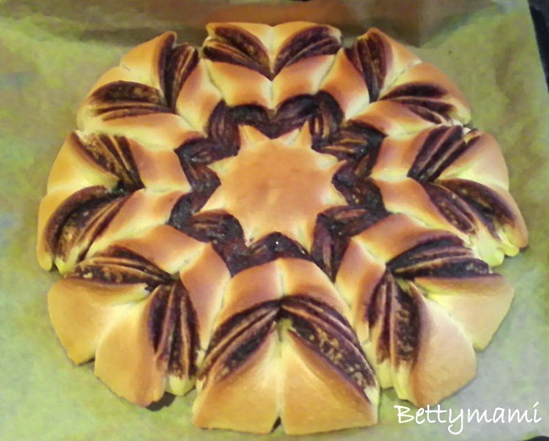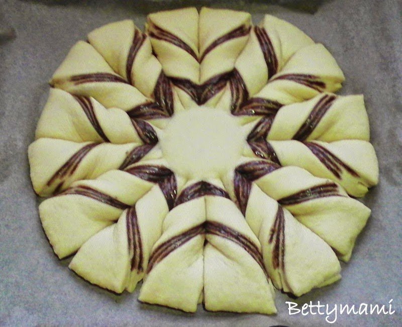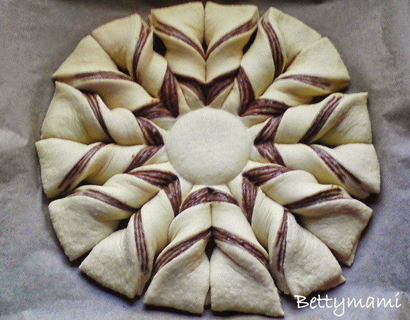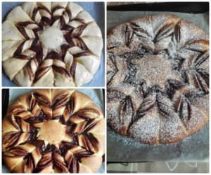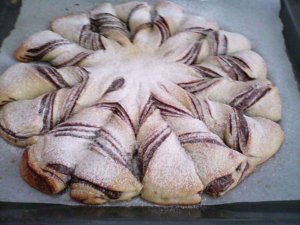 majd áttesszük egy sütőpapírral bélelt tepsibe. A nutella 1/3 részével bekenjük.