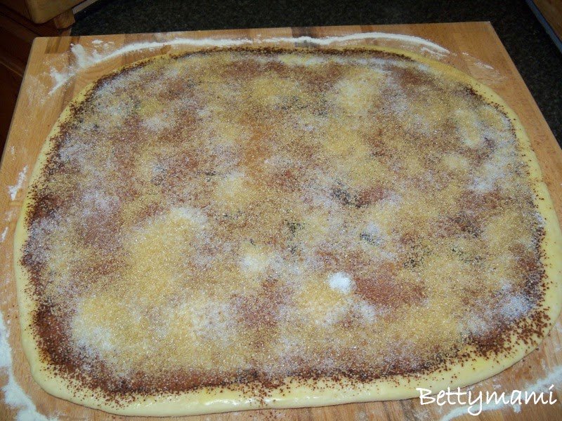 Rákenjük az olvasztott vajat, meghintjük az átszitált kakaóporral, cukrokkal(nálam itt most barna cukor és sima vaníliás cukor van rajta, azért ez a színárnyalat), és aki szereti egy kiskanál fahéjat is rászórhat (én szoktam, mert nagyon kellemes ízt ad a kakaónak).