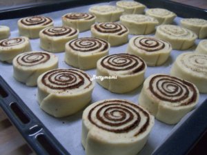 Sütőpapírral bélelt tepsibe fektetjük, egymástól kicsit távolabb, mert megnőnek majd.