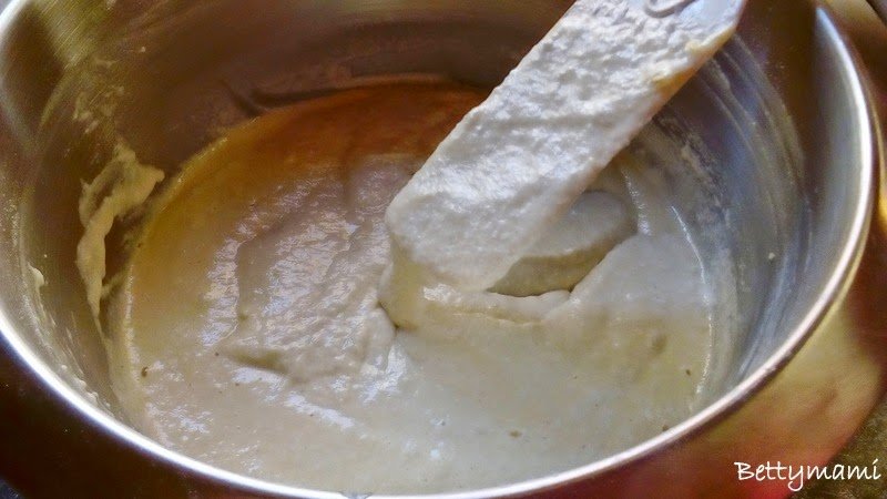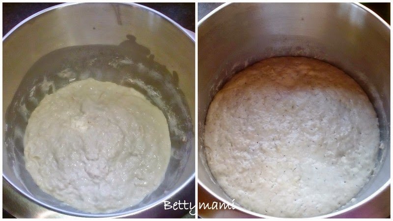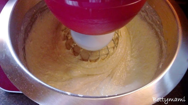 Majd hozzáadjuk az előtésztához a vajas keveréket, és a tejet. Elkeverjük, majd hozzáadjuk a lisztet, és simára keverjük a tésztát.
