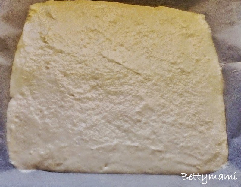 Sütőpapírral bélelt tepsibe öntjük a masszát,