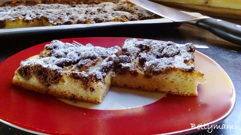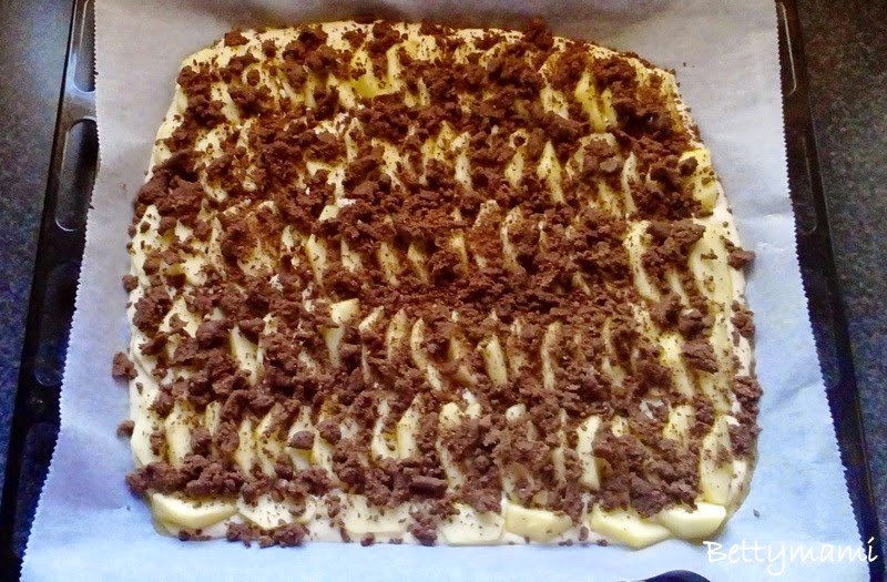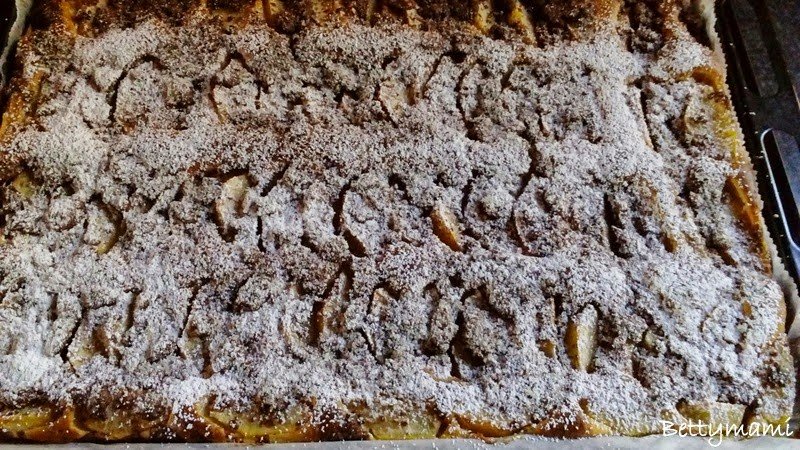 Még forrón meghintjük porcukorral, a tepsin hagyhatjuk is kihűlni, majd kockára vágva kínáljuk.