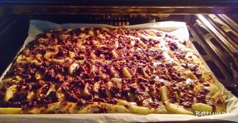 Majd kivesszük a süteményt, a sütőt bekapcsoljuk 180 fokra légkeverésen és egy edényt rakunk az aljába a víznek, hogy gőzős sütőben tudjon majd sülni.
