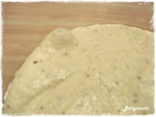 Kb. 10-15 perc után kézzel kilapogatjuk, én NEM(!) nyújtom a sodrófával. Így szépen bent maradnak a buborékok és jó könnyű, levegős lesz a tészta.