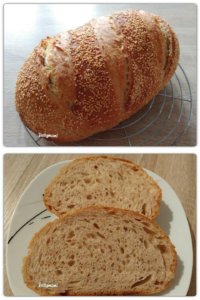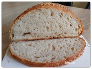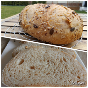 Eszerint a recept szerint már számtalanszor sütöttem, mert egyszerű és nagyon jó… 🙂 Nem is fotóztam mindig, de finom kenyerek lettek minden alkalommal. A lenti kis videó a recept forrása, én mindössze annyit változtattam, hogy az ott megadott mennyiségek 3/4 részével szoktam készíteni. Ezúton is köszönöm Stefi, hogy rábukkantál, hoztad és lefordítottad a FB-on a kenyeres csoportban/-nak 🙂