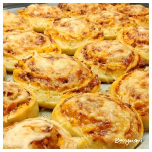 ízlés szerint ki mit szeret, ill. mi van otthon… Én az ebédből megmaradt bolognai spagetti húsos szószát használtam töltelékként, egy kicsit felturbózva 🙂 Kb. így nézett ki: