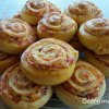 Kb. 30 perc pihentetés után vékony, téglalap alakúra kinyújtjuk a tésztát. Rákenjük a húsos tölteléket, megszórjuk kukoricával, a karikára vágott kolbászt is elosztjuk rajta, végül meghintjük reszelt sajttal. Majd a szélesebb oldalánál feltekerjük és kb. 2 cm vastag szeletekre vágjuk. Mindjárt egy sütőpapíros tepsibe fektetjük, ahol ismét pihentetjük még kb. 30 percet, amíg bemelegszik a sütő.