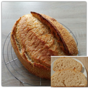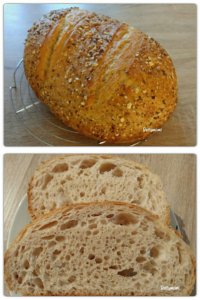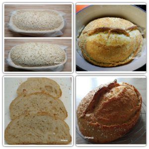 Az utolsó hajtogatás után is hagyjuk pihenni, majd megformázzuk és meghempergetjük zabpehelyben és lisztezett konyharuhába/kelesztőtálba vagy simán sütőpapírral bélelt sütőedénybe tesszük, és ismét hagyjuk még kelni. Itt ismét nincs konkrét idő, hogy meddig kell keleszteni… Lehet 1 óra, de lehet 2-3 is szintén a körülményektől függően. Figyelni kell a tésztát, többször rá kell nézni.