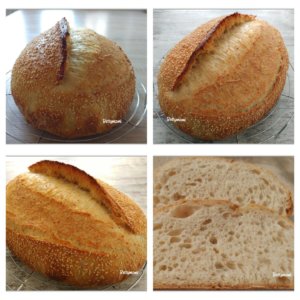 Aztán 3-4-szer meghajtogatjuk lisztezett felületen kb. 30 perces időközönként. (Figyelem! Körülményektől függően változóan kel a tészta… még nálam is… 😉 Volt, hogy elég volt a 2 is, ha pl. melegebb van és gyorsabban kel a tészta. Ha ilyenkor tovább hajtogatjuk, már ebben a stádiumban is képes túlkelni a tészta.)