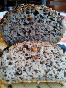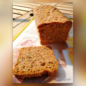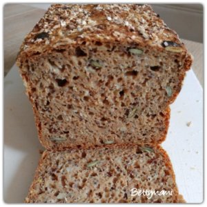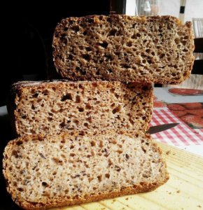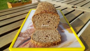 Ez a finomság is Edittől érkezett, ami nagyon hasonlít ehhez a rozskenyérhez. Viszont itt az egész teljes kiőrlésű tönkölyből készül, éppen ezért nem is olyan savanykás az íze, mint a rozsnak. A magokat és a fűszerezést is természetesen ízlés szerint variálhatjuk.