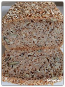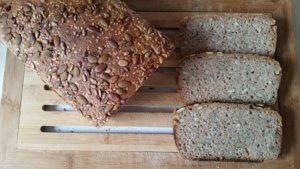 Figyeljünk oda, mert sütőtől függően változhat ez az idő! Ha nagyon barnulna a teteje, ill. mielőtt a magok megégni készülnek, takarjuk le alufóliával vagy sütőpapírral a tetejét. Ha megkopogtatjuk az alját, és szépen kong, akkor megsült.