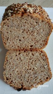 TIPP: Ennek a kenyérnek legjobb, ha csak másnap vágjuk meg. Éppen ezért én úgy készítem, hogy reggel bekeverem az előtésztát, és kora este adom hozzá a többi anyagot, kelesztem és még este megsütöm. Így másnap reggel vágjuk csak meg.