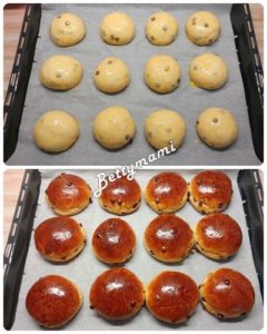 ~ Majd 12 egyforma darabba vágjuk, gombócokat formázunk belőlük és sütőpapíros tepsire pakoljuk, letakarva pihentetjük kb. 30-60 percet.