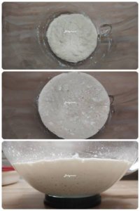 Lisztezett tálba tesszük, letakarva pihentetjük kb. 1 órát, ill. amíg szemmel láthatóan növekedésnek indul.