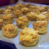 Kinyújtjuk kb. 1,5 cm vastagra, tetejét bekockázzuk és tetszés szerint kiszaggatjuk a pogácsákat, vagy egyszerűen csak kockákra vágjuk fel, sütőpapíros tepsire pakoljuk és ismét pihentetjük. Végül lekenjük a tetejüket egy kissé felvert tojással.