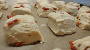 Kiszaggatjuk a pogácsákat, vagy kockára vágjuk, kinek mi a szimpatikusabb… 🙂