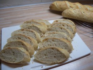 230 fokra előmelegített gőzös sütőbe toljuk, 10 perc után kivesszük a vizet, majd a hőfokot visszavesszük 200-ra, és további kb. 20-25 perc alatt készre sütjük. Ha megsült, rögtön lespricceljük hideg vízzel(ha lisztes, nem muszáj vagy csak nagyon finoman és távolabbról), és rácson hagyjuk kihűlni.