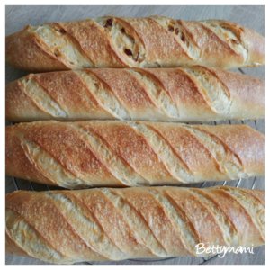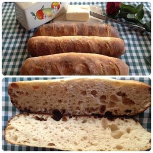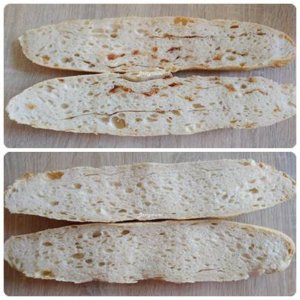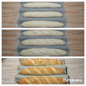 Enyhén lisztezett munkalapon óvatosan kilapogatjuk és itt megszórhatjuk ízlés szerint valamilyen “töltelékkel” is, majd feltekerjük bagett formára. Lisztezett konyharuhába vagy bagett-formába tesszük, és letakarva ismét hagyjuk még kelni. Itt ismét nincs konkrét idő, hogy meddig kell keleszteni… Lehet 1 óra, de lehet 2-3 is szintén a körülményektől függően. Figyelni kell a tésztát, többször rá kell nézni.
