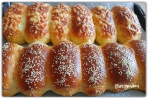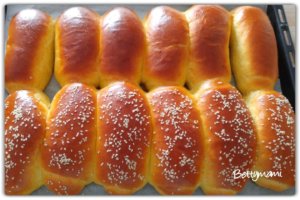 A vízben elkeverjük az élesztőt, a cukrot, a sót és a tejport. Hozzáadjuk a tojást, azt is elkeverjük. Majd a lisztet hozzáöntve elkezdjük dagasztani. A videón kézzel dagaszt, én simán a géppel dagasztom. A tészta nagyon ragadós és lágy! Amikor már jól összeállt, hozzáadjuk a puha vajat. Kézzel dagasztásra ír 15 percet, géppel azért ez kevesebb… Cipót formázva vékonyan kiolajozott tálba tesszük, letakarjuk és duplára kelesztjük. Nagyon jó puha a tészta, olyan mint hab, ahogy megfogjuk. Lisztezett lapon szoktam darabolni és formázni. Formázva letakarva megint a duplájára kelesztjük. Lekenjük egy kissé felvert tojással és 175 fokon 15-20 perc alatt megsütjük.