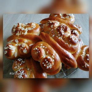 ~ Végül lekenjük egy kissé felvert tojással és 180 fokra előmelegített sütőben kb. 25-30 perc alatt megsütjük. Rácson hagyjuk kihűlni.