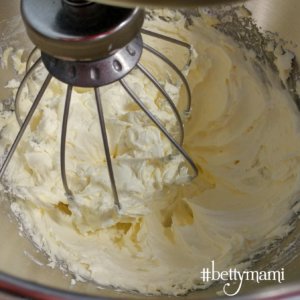 A puha szobahőmérsékletű vajat a porcukorral habosra keverjük.